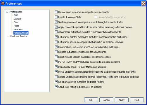 Check this box if you wish MDaemon to create and maintain "Everyone" mailing lists for your domains (e.g. "everyone@example.com"). Maintaining mailing lists of every user on every MDaemon domain could be a potential waste of resources if the lists are never used, or if they are for very large numbers of users. This option is disabled by default.