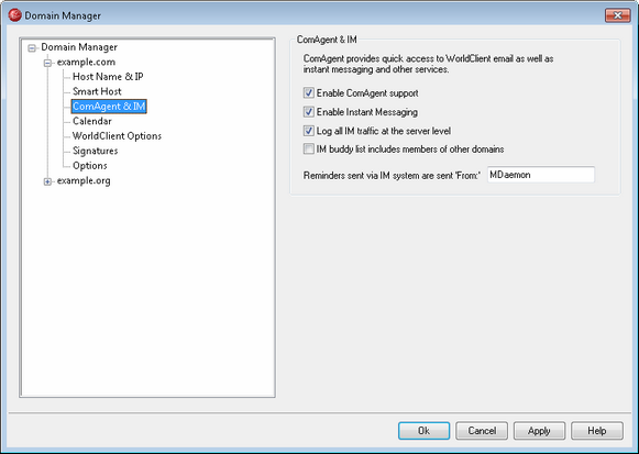 Click this option if you want to activate ComAgent's instant messaging (IM) system for the domain's users. Clear the check box if you want the instant messaging controls to be unavailable.