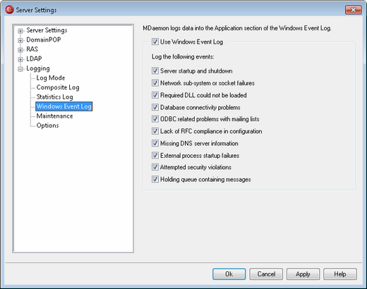 Click this check box if you want to log critical system errors, warnings, and certain other events into the Application section of the Windows Event Log.