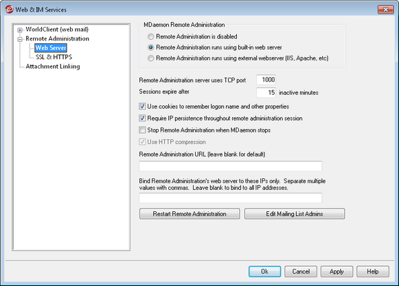 Bind Remote Administration's web server to these IPs only
