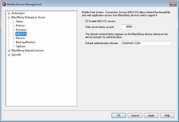 This is the domain value that will appear on the BlackBerry device anytime the device prompts the user for authentication related to MDS-CS activities.