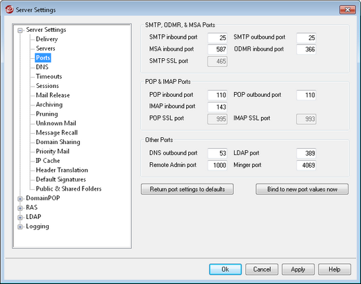 POP & IMAP Ports (some features require MDaemon PRO)