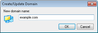 To change a domain name: select a domain from the list below, click Rename domain, type the new domain name in the Create/Update Domain dialog, and click OK.