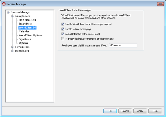 Click this option if you want to activate WCIM's instant messaging (IM) system for the domain's users. Clear the check box if you want the IM controls to be unavailable.