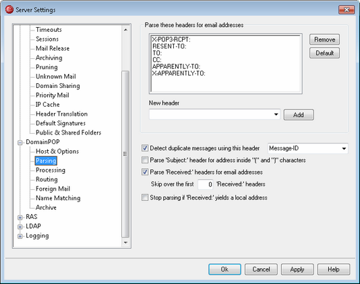 This area lists the headers that MDaemon will parse in an attempt to extract addresses. Every header listed here is checked for addresses.