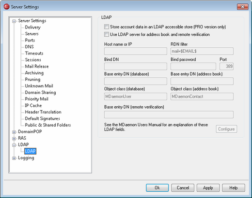 Click this check box if you want MDaemon to use your LDAP server as the MDaemon user database rather than ODBC or its local USERLIST.DAT system. You might want to use this method of maintaining your user information if you have multiple MDaemon servers at different locations but want them to share a single user database. Each MDaemon server would be configured to connect to the same LDAP server in order to share user information rather than storing it locally.