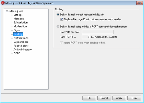 If selected, when messages are received for distribution to the list, a separate copy of each message will be created and dispatched to each list member. This will result in numerous individual messages being created which could affect the server's performance, depending on the size of the list and the load on the server.