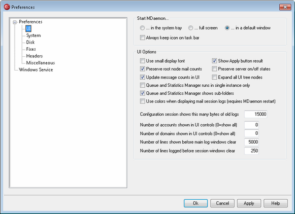 Choose this option if you want MDaemon's interface to be maximized at startup.