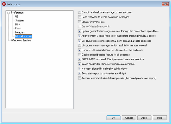 Click this option if you wish to globally disable the Subaddressing feature. Subaddressing will not be permitted for any account, regardless of the individual account settings. For more on Subaddressing, see the IMAP Filters screen of the Account Editor.