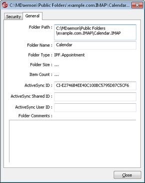 This tab displays the folder's properties, such as its path, name, type, size, and so on.