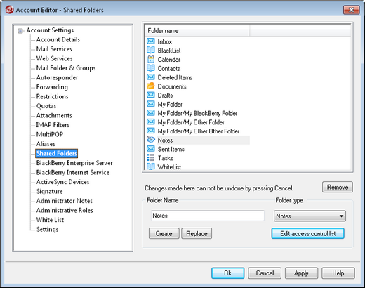 To remove a Shared IMAP folder from the list, select the desired folder and then click the Remove button.