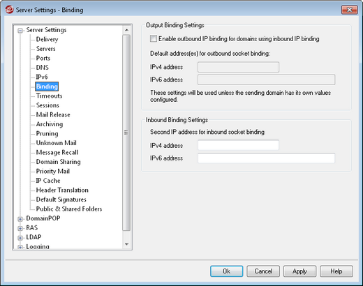 Use this option if you wish to designate a second set of IP addresses for inbound socket binding.
