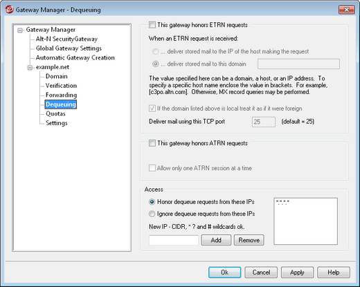 Select this switch and MDaemon will honor ETRN/ATRN requests made from any IP listed in the associated address list.