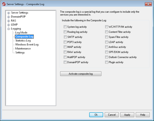 Plugin activity—Logs MDaemon plugin activities to the composite log.