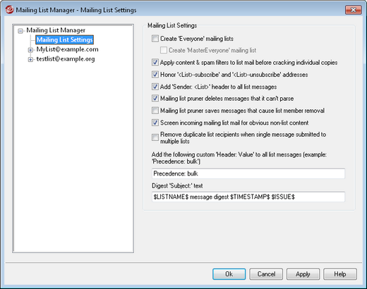 Click this checkbox if you want MDaemon to recognize email addresses of this format as valid (as long as the list actually exists) in order to facilitate an easier method for users to join and leave your mailing lists. For example: suppose you have a list called MyList@example.com. People will be able to subscribe/unsubscribe to your list by sending an email message to MyList-Subscribe@example.com and MyList-Unsubscribe@example.com. The content of the subject and message body is irrelevant. Also, when this feature is active MDaemon will insert the following header into all list messages: