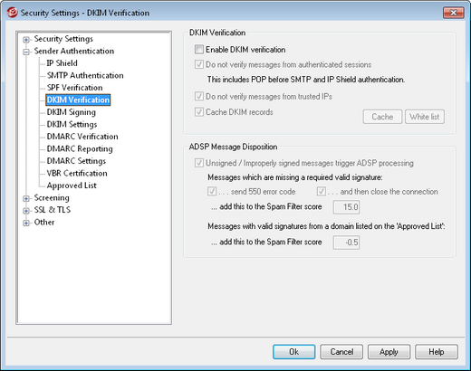 Click this option to enable DomainKeys Identified Mail verification of incoming remote messages. This option is required if you have SecurityPlus for MDaemon installed and wish to use its Urgent Updates feature.