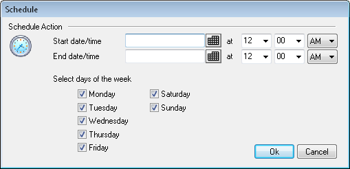 Click this button to open the Schedule dialog on which you can set a start and end date and time for the Autoresponder, and set the days of the week for it to be active. Leave the Schedule blank if you want the Autoresponder to be active continually.
