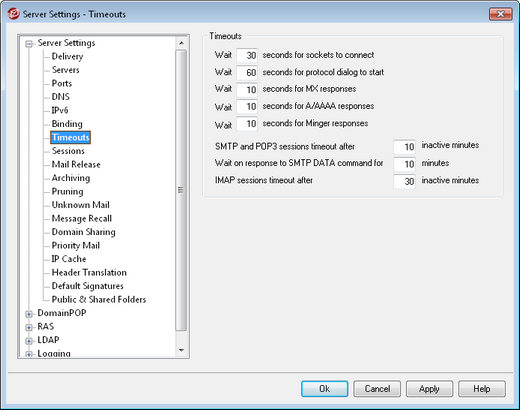 SMTP and POP3 sessions timeout after XX inactive minutes