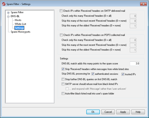 Use this option if you want DNS-BL to skip over one or more of the oldest Received headers when checking DomainPOP and MultiPOP messages.
