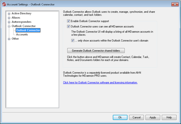 Click this checkbox to activate Outlook Connector for MDaemon. Your users will not be able to utilize Outlook Connector's features unless this option is enabled.