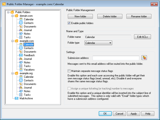 Click this check box if you wish to allow users to gain access to public folders. The users that can access them and the level of access granted is controlled by selecting a folder and clicking the Edit ACLs button.