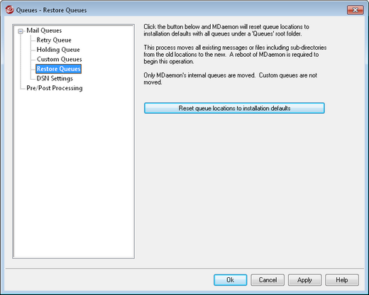 Reset queue locations to installation defaults