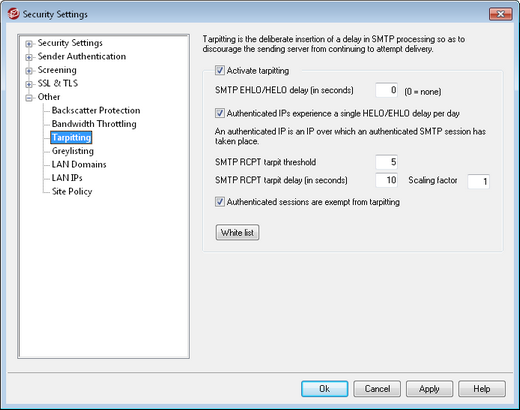 Click this checkbox if you want senders who authenticate their mail session to be exempt from Tarpitting.