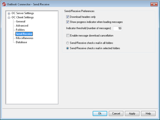 Outlook Connector displays a progress indicator when downloading a large number of messages. Clear this checkbox if you do not wish to display the progress indicator.