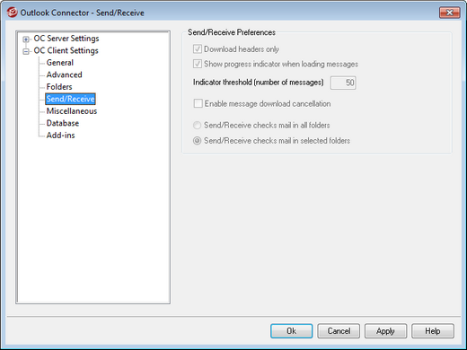 Outlook Connector displays a progress indicator when downloading a large number of messages. Clear this checkbox if you do not wish to display the progress indicator.