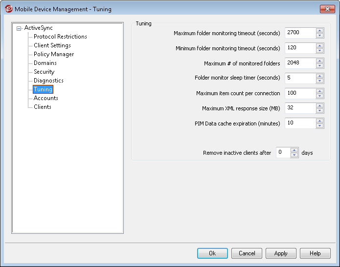 This is the maximum amount of time that MDaemon ActiveSync Service (MDAS) will wait while monitoring a folder before returning a response to the client. The default value is 2700 seconds (i.e. 45 minutes).