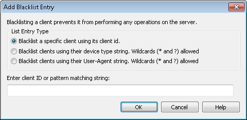 Use this option to prevent a specific Device Type, Device ID, or User Agent from accessing MDaemon's ActiveSync server.