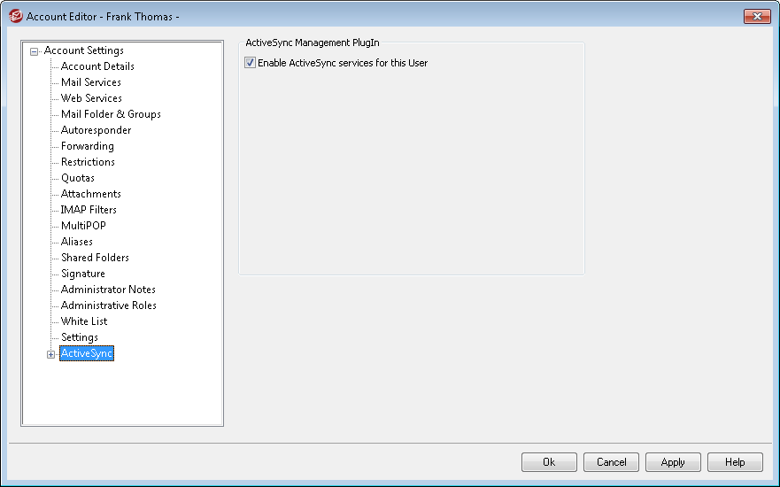 If you wish to allow the account to use an ActiveSync client to access its email and PIM data, enable this option.