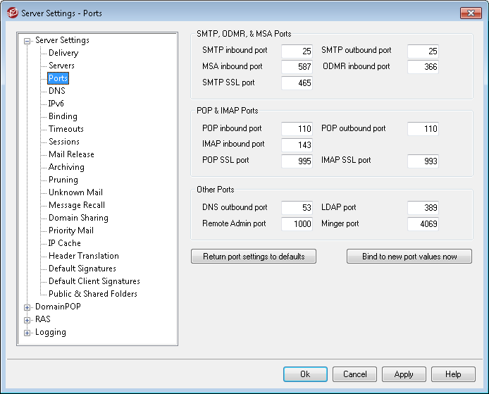 MDaemon will monitor this TCP port for incoming connections from SMTP clients. This is the main SMTP port, which in most cases should be left at the default setting of port 25.
