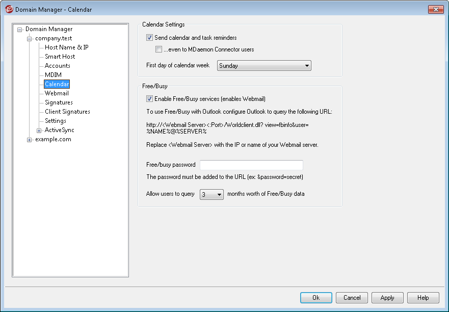 Click this option if you wish to provide access to the Free/Busy server features to users.