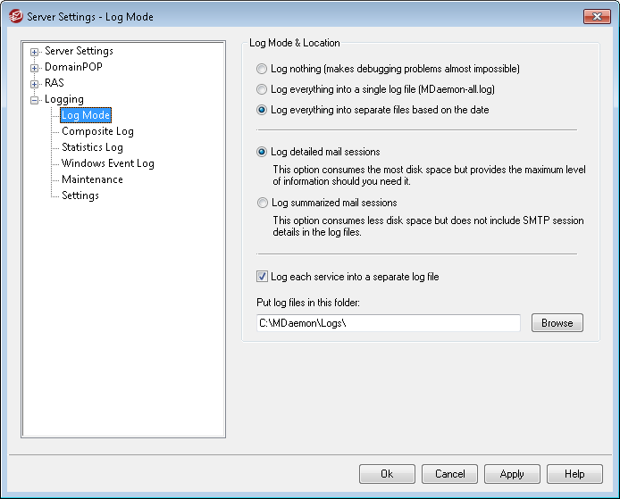 Choose this option if you wish to log everything into a single, separate file named MDaemon-all.log.