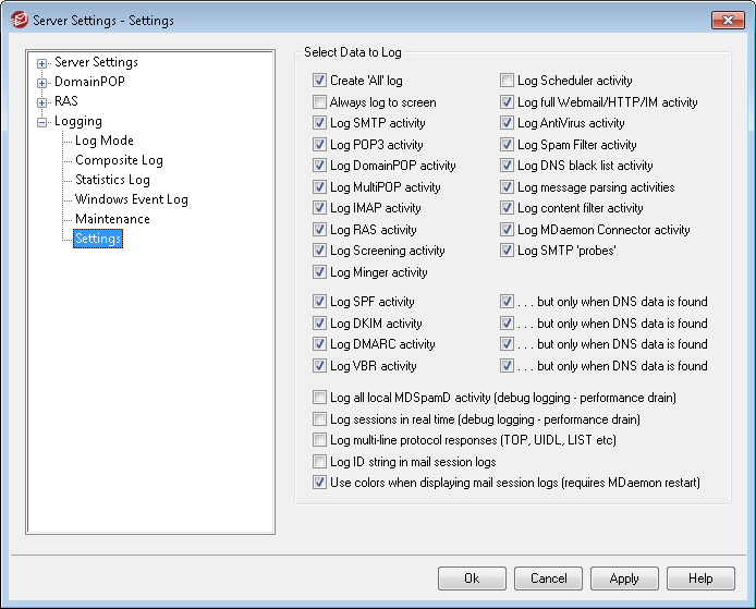Click this checkbox to log all DomainPOP mail activity.