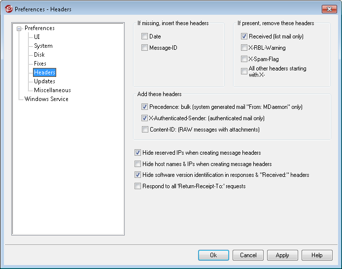 MDaemon and other mail servers use many server specific headers called X-Type headers in order to route mail and perform various other functions. When this option is enabled, MDaemon will strip these headers from messages. Note: this option does not remove X-RBL-Warning headers. If you wish to remove those headers, use the "X-RBL-Warning" option above.