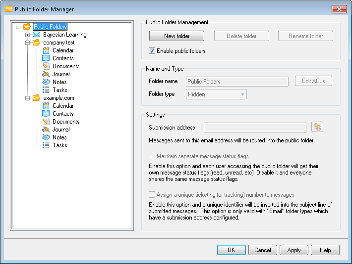 Click this check box if you wish to allow users to gain access to public folders. The users that can access them and the level of access granted is controlled by selecting a folder and clicking the Edit ACLs button.