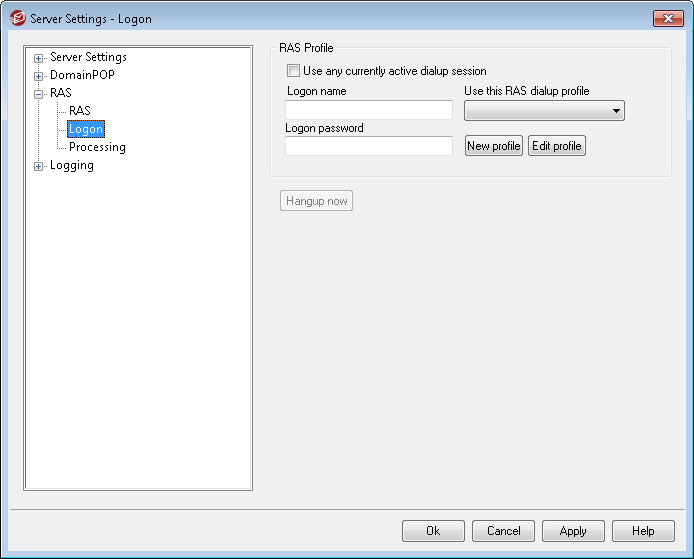 This button will close the connection to the ISP. This button is active only when MDaemon initiated the RAS session.