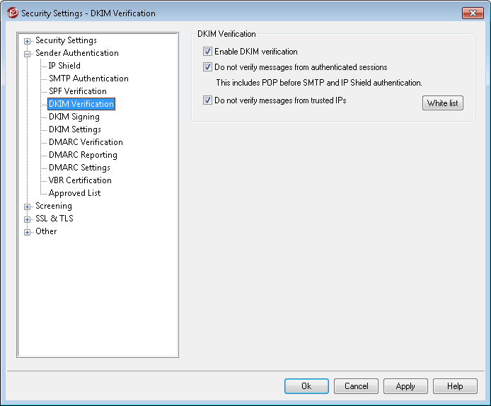 Use this option if you want connections from trusted IP addresses to be exempt from DKIM verification.