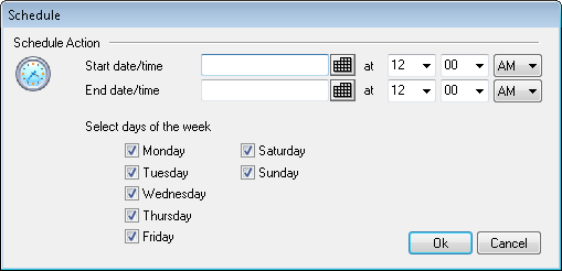 Click this button to open the Schedule dialog on which you can set a start and end date and time for the Autoresponder to be active. Leave the Schedule blank if you want the Autoresponder to be active continually.