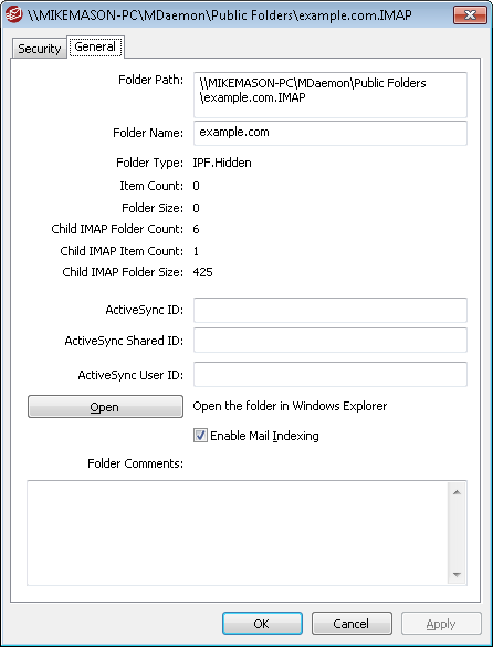 This tab displays the folder's properties, such as its path, name, type, size, and so on.