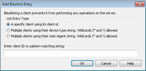 Use this option to prevent a specific Device Type, Client ID, or User Agent from accessing MDaemon's ActiveSync server.
