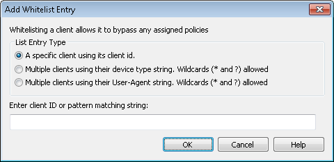 Use this option to exempt a specific Device Type, Client ID, or User Agent from provisioning or policy restrictions.
