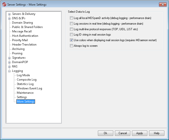 Use colors when displaying mail session logs (requires MDaemon restart)