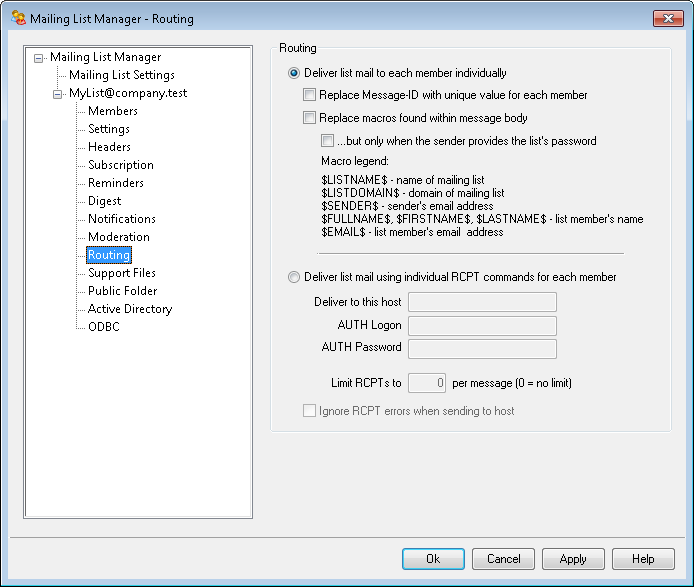 Enable this option if you wish to allow the use of special macros in mailing list messages. When a macro is found, MDaemon will replace it with the corresponding value the macro represents, for each separate message before sending it to each list member.