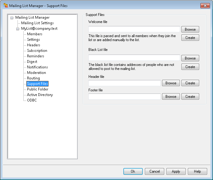 The contents of the files specified here will be used as the header and/or footer file for list messages.