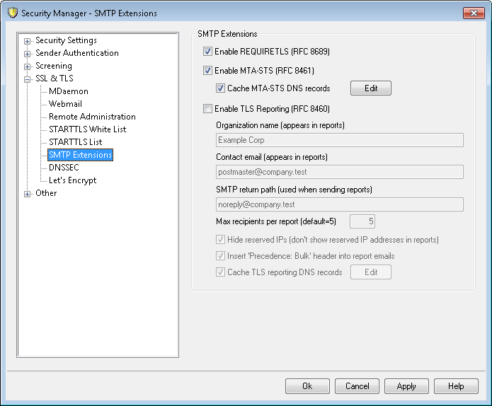 MTA-STS support is enabled by default and is described in RFC 8461: SMTP MTA Strict Transport Security (MTA-STS).