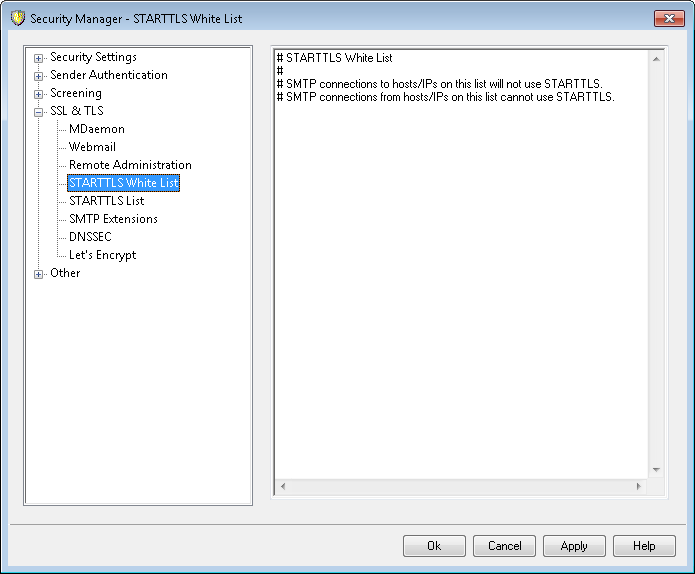 Use this white list to prevent the use of STARTTLS when sending or receiving mail to or from certain hosts or IP addresses.
