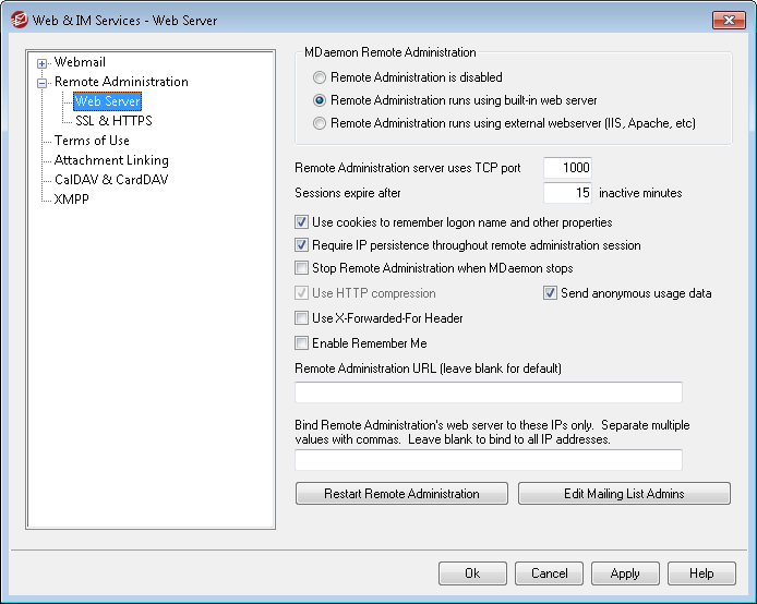 Bind Remote Administration's web server to these IPs only